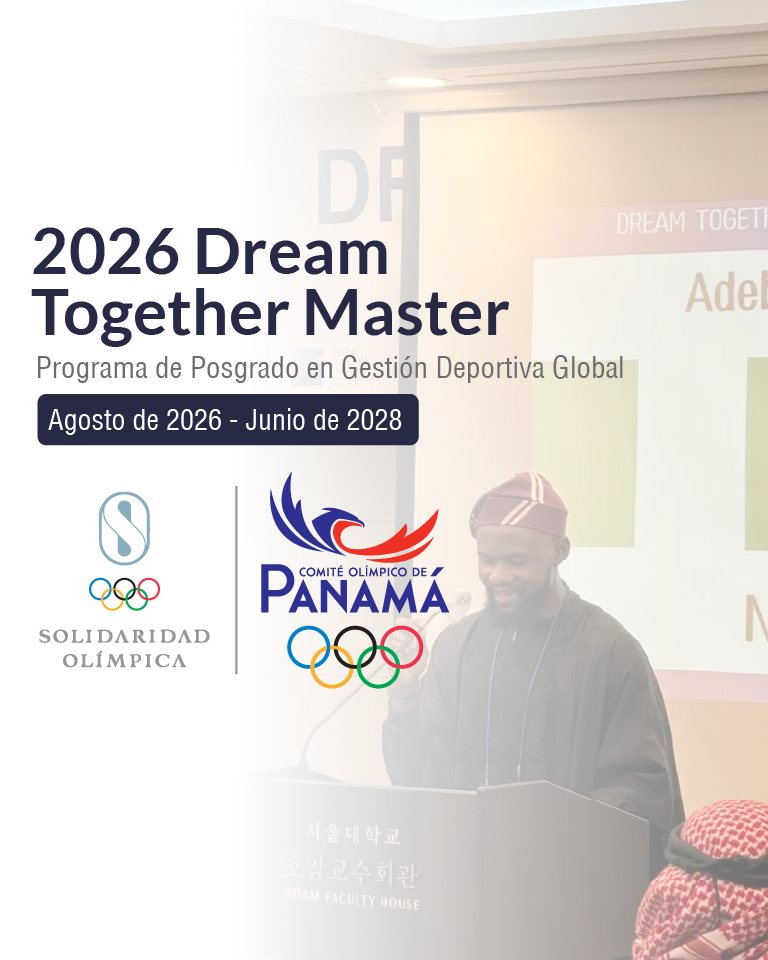 El Comité Olímpico de Panamá les invita a postular al Dream Together Master 2026 - 2027 de la Universidad Nacional de Seoul que tiene como objetivo promover el desarrollo del deporte global mediante la provisión de una educación de primer nivel para futuros líderes en el campo de la gestión deportiva.
