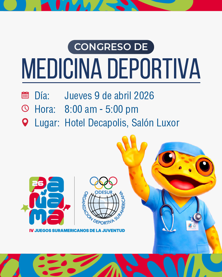Congreso de Medicina Deportiva orientado a fortalecer las capacidades del personal médico y de apoyo, mediante el intercambio de conocimientos, experiencias y buenas prácticas en medicina del deporte y la atención en eventos multideportivos, con el propósito de garantizar una atención integral, segura y oportuna durante los IV Juegos Suramericanos de la Juventud, dirigido al personal de salud de los Comités Olímpicos Nacionales.